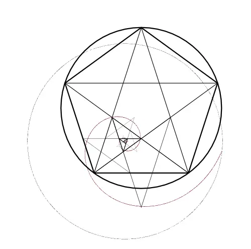 Representació de la fractalitat de Phi en pentagrames i espirals